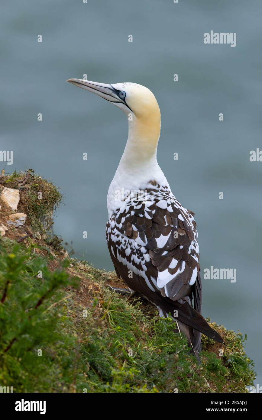 A third calendar year Norther Gannet at RSPB Bempton Cliffs Stock Photo