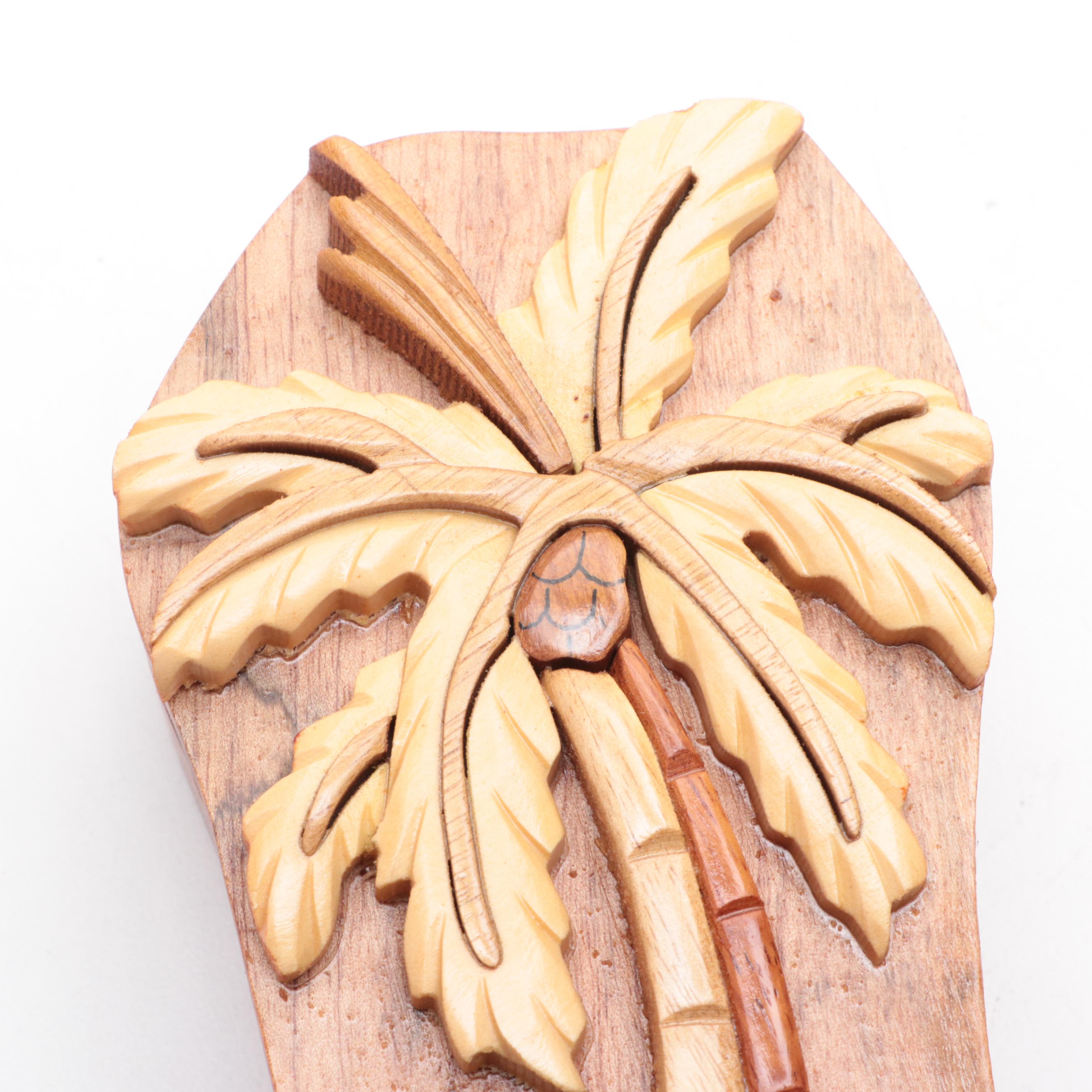 Wooden Parrot and Palm Tree Puzzle Boxes EBTH
