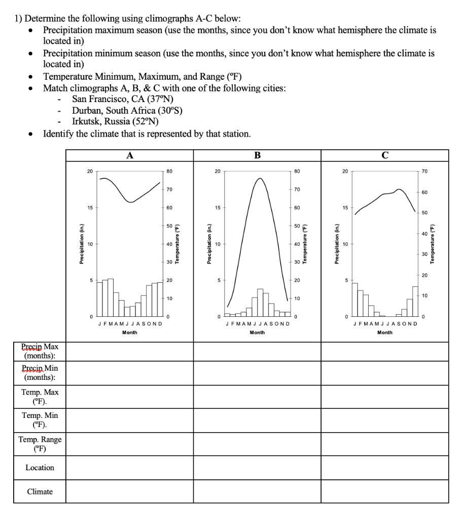 Solved Climograph Worksheet Questions San Francisco CA Chegg com