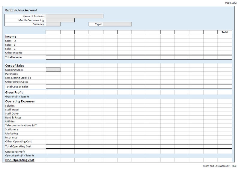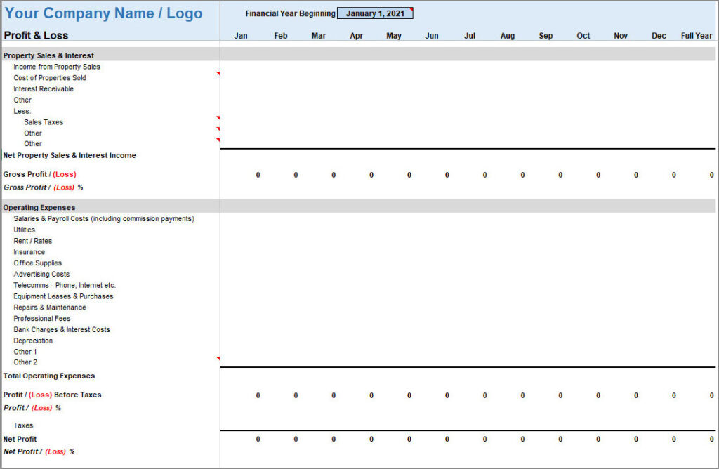 Profit And Loss Template For Rental Property