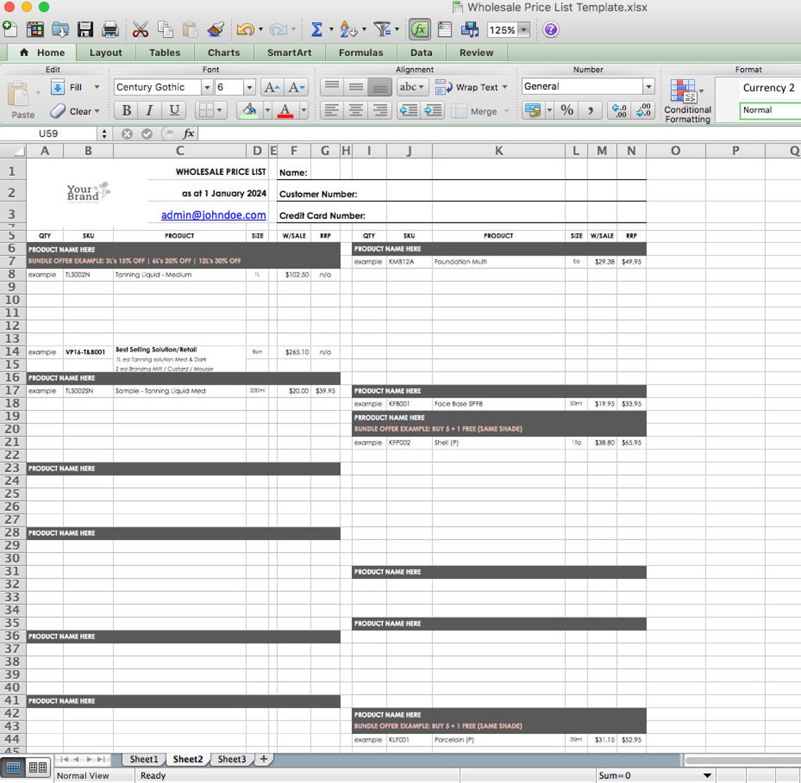 Wholesale Price List Template Excel Etsy