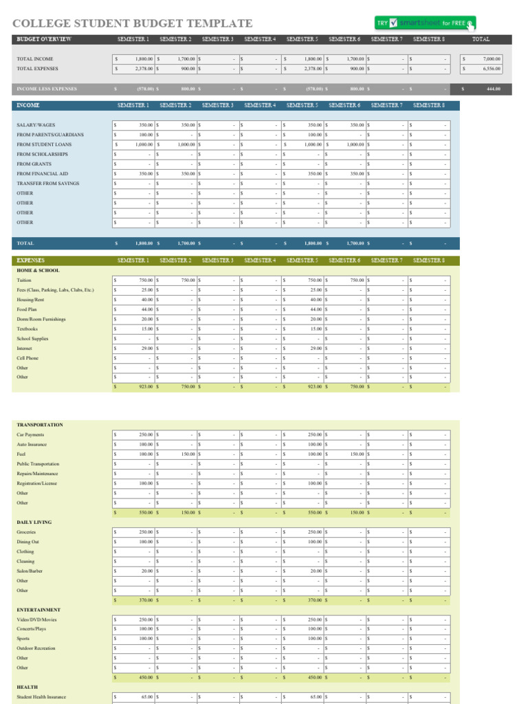 IC College Student Budget Template 9036 PDF