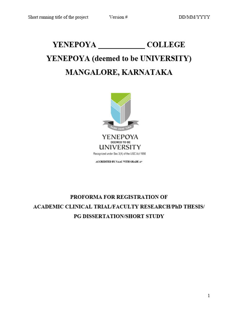 Postgraduate Synopsis and Research Protocol Template PDF Clinical
