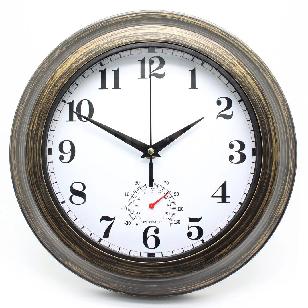 Waterproof 12 inch Gold Analog Patio Outdoor Clock with Large