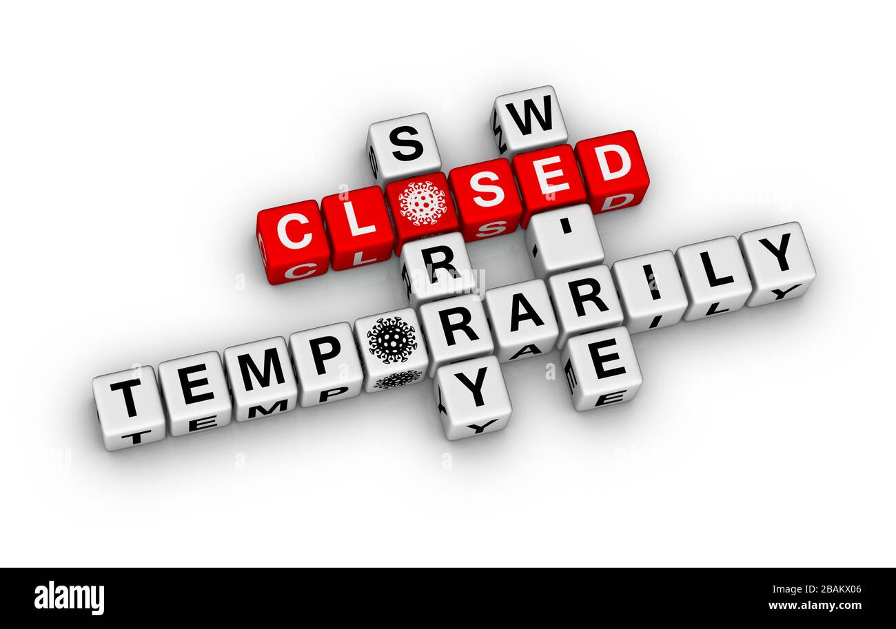 Sorry We #39 re Closed Temporarity Sign with coronavirus icon 3D crossword