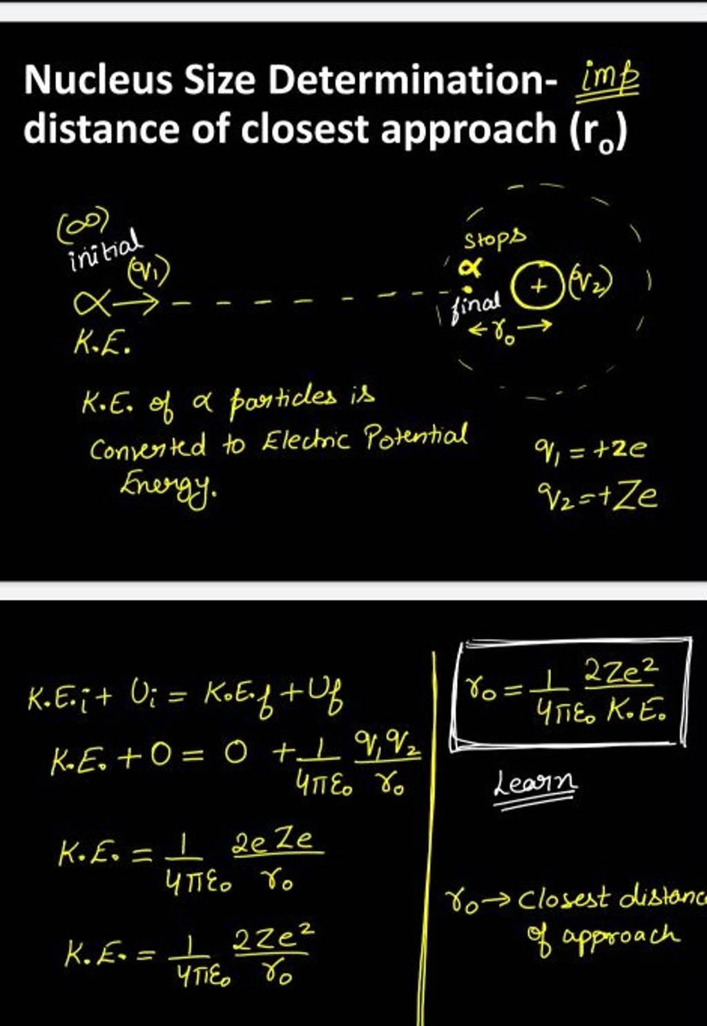 Nucleus Size Determination imp distance of closest approach (r0 ) K E o