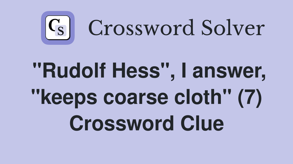 quot Rudolf Hess quot I answer quot keeps coarse cloth quot (7) Crossword Clue