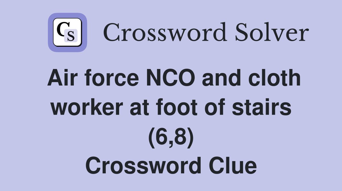 Air force NCO and cloth worker at foot of stairs (6 8) Crossword Clue