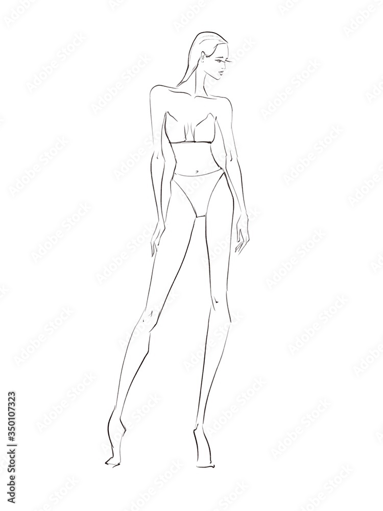 Fashion Model Template for Clothes Design Simple Line Illustration