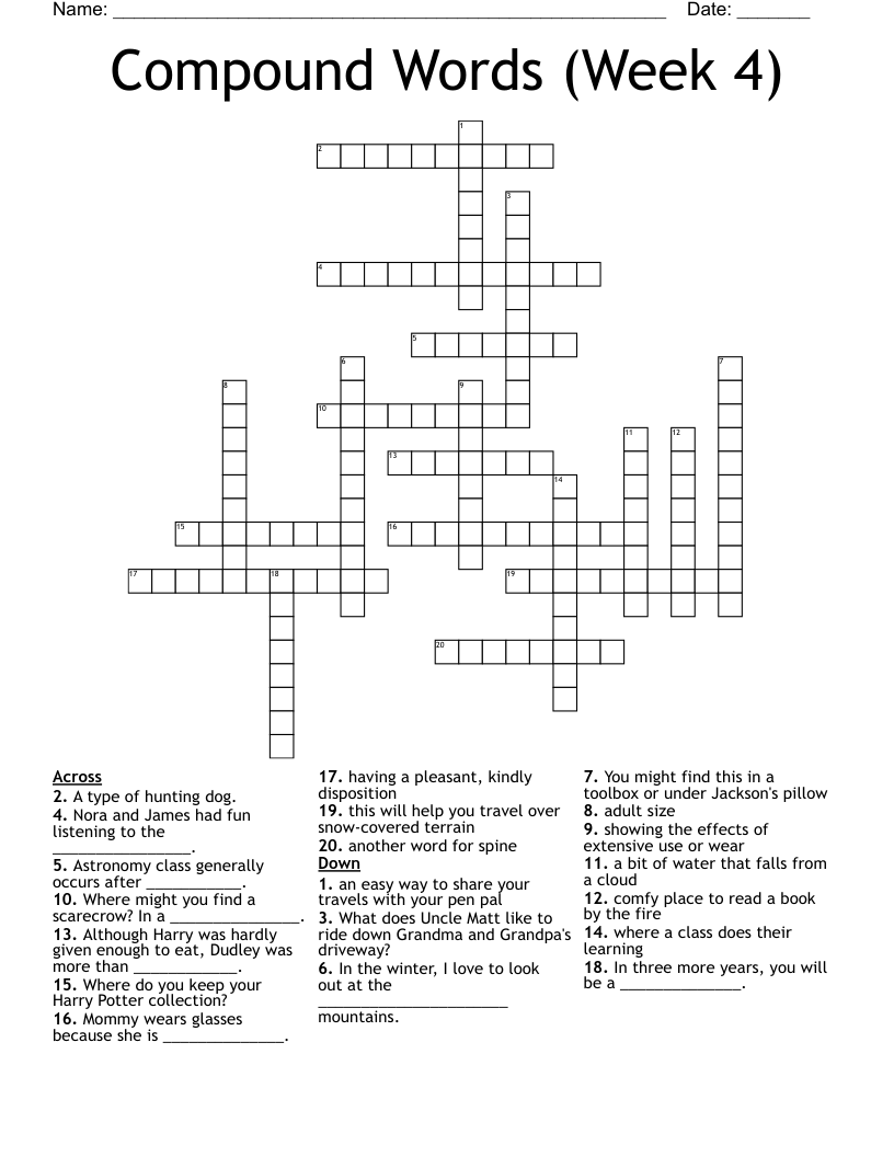 Compound Words (Week 4) Crossword WordMint