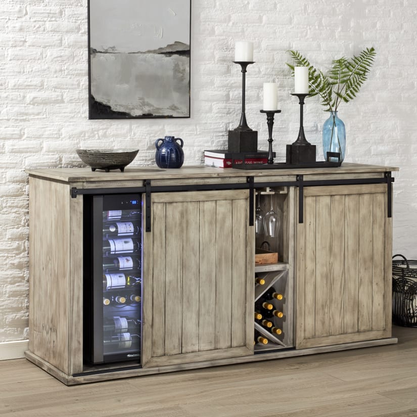 Mesa Sliding Barn Door Credenza with Cooling Storage Option (Driftwood