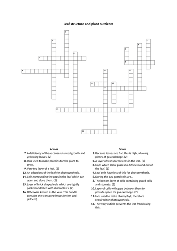 Crossword and keyword definitions list: Structure of a leaf plant