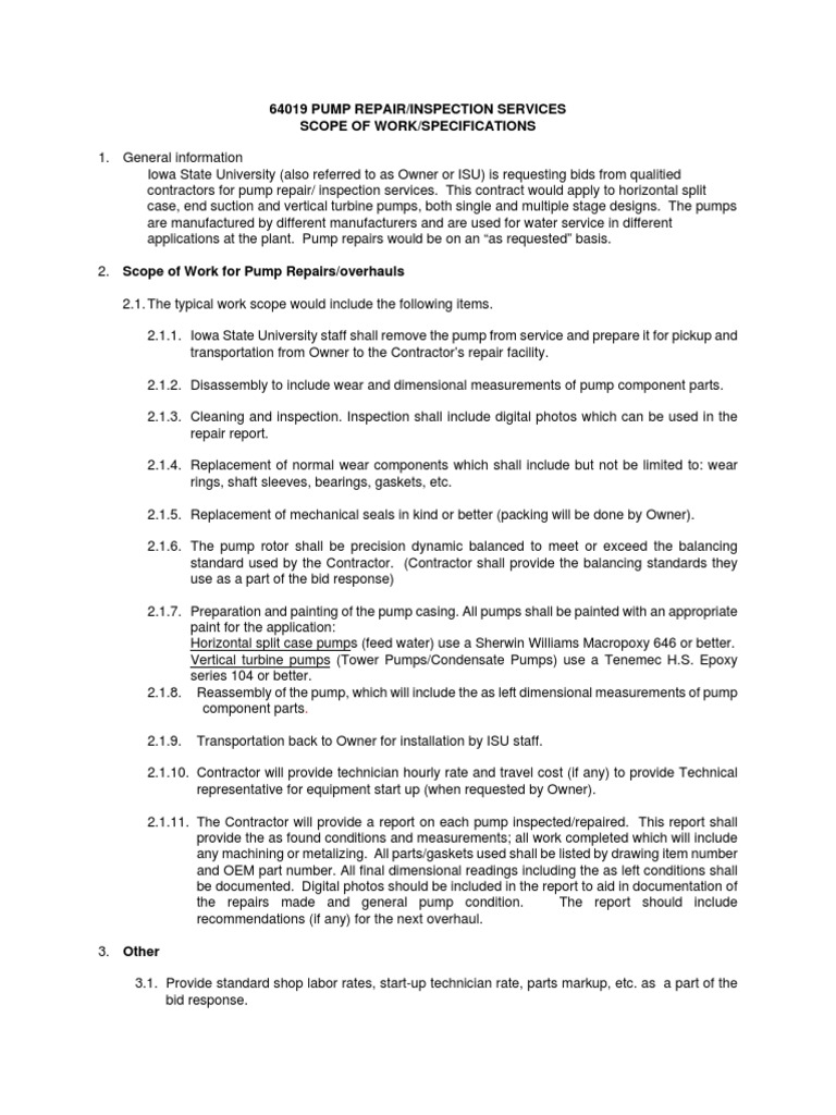 Pump Repair/Inspection Services Scope of Work/Specifications PDF