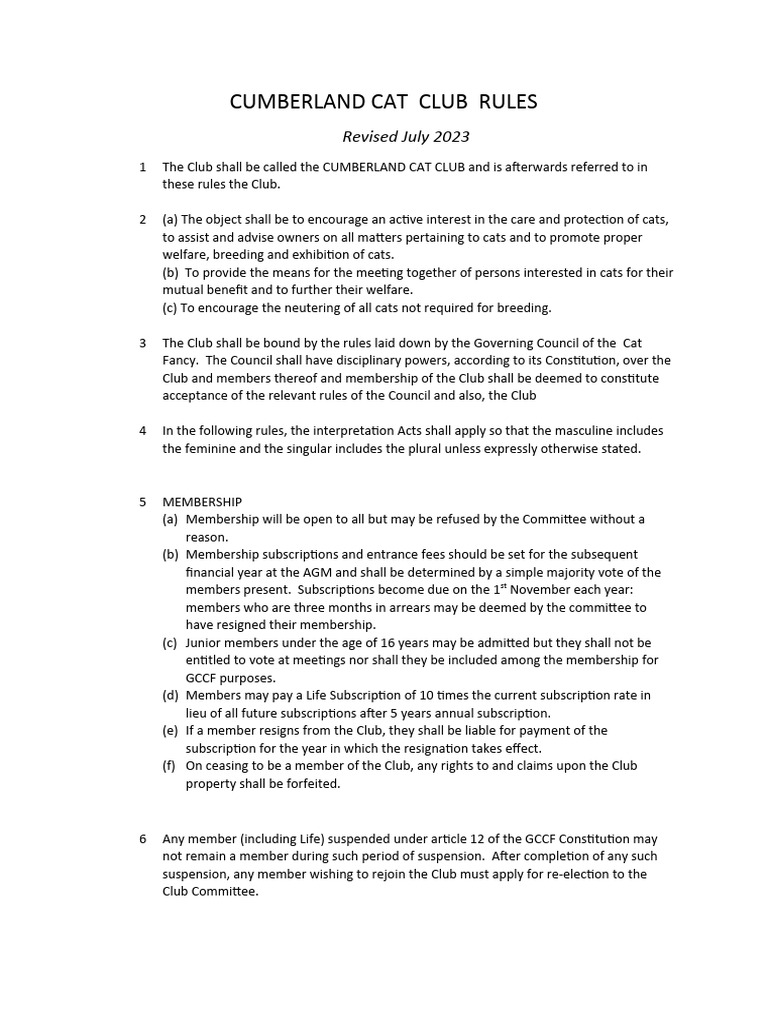 cumberland cat club rules updated 2023 PDF Grammatical Gender