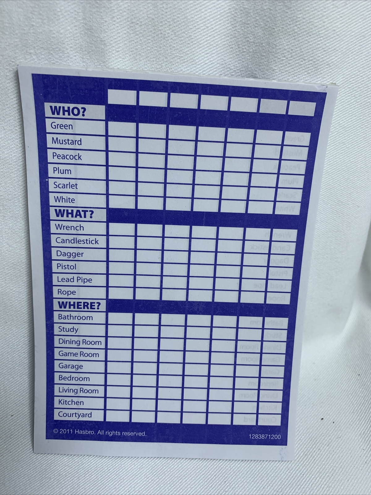 Downloadable Hasbro Clue Sheets Printable Printable Board Games