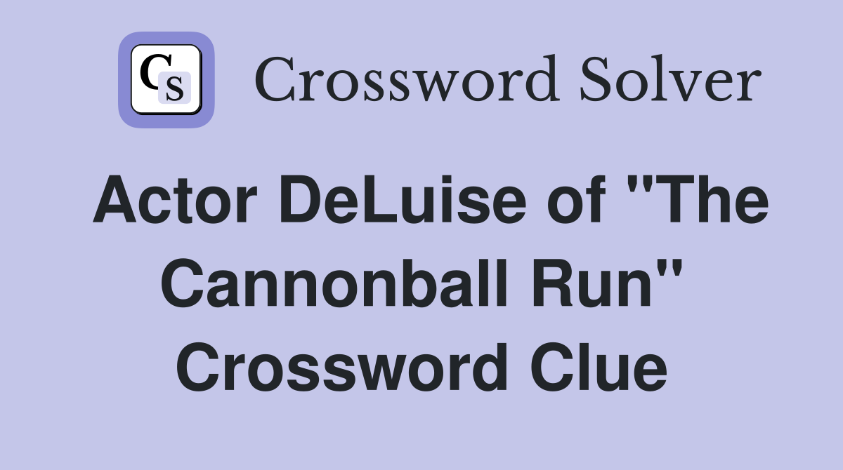 Actor DeLuise of quot The Cannonball Run quot Crossword Clue Answers