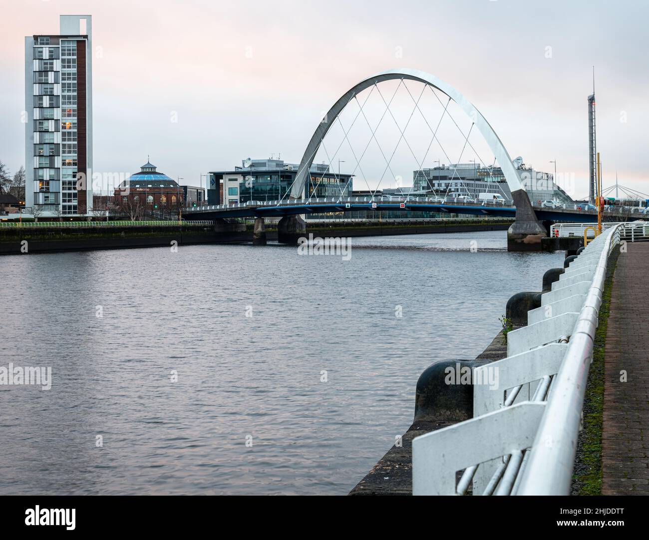 The Clyde Arc (also known as the Squinty Bridge) road bridge spanning