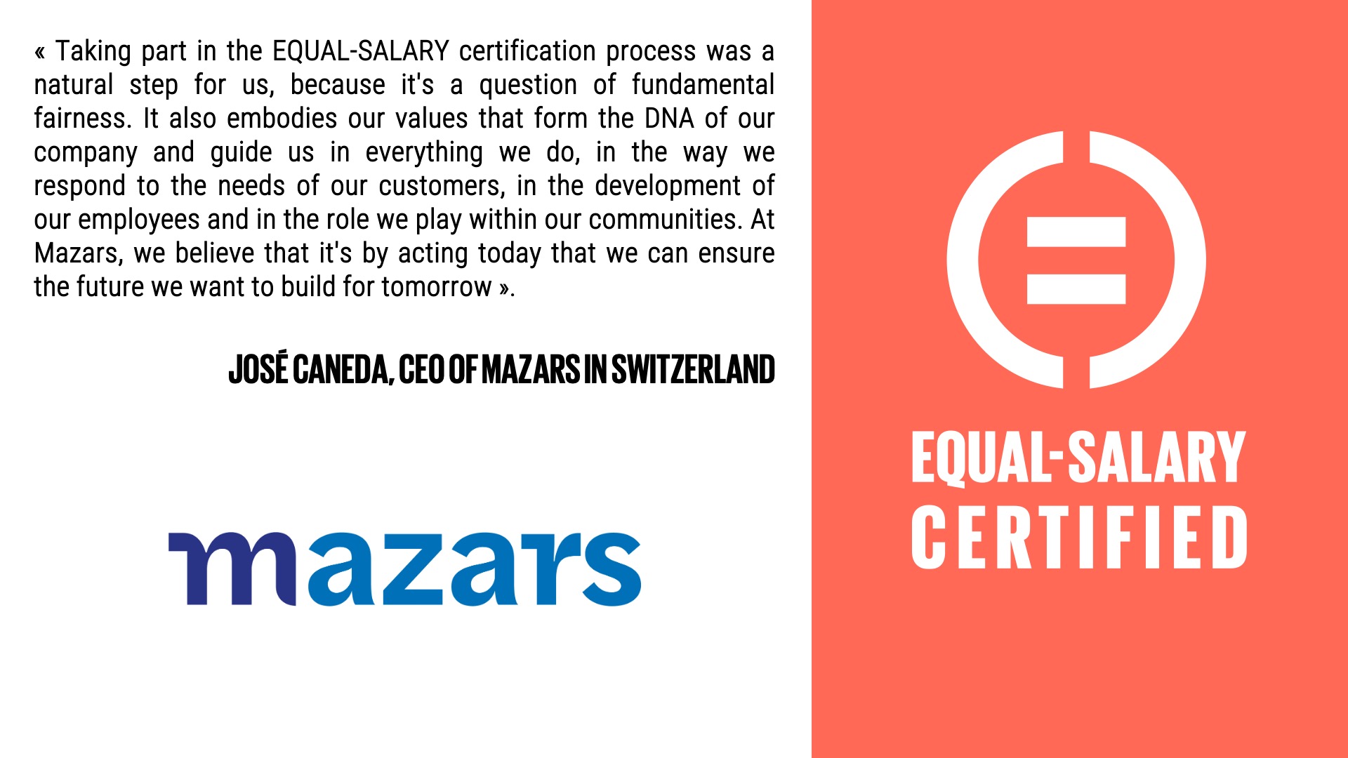 MAZARS IN SWITZERLAND BECOMES EQUAL SALARY CERTIFIED • EQUAL SALARY