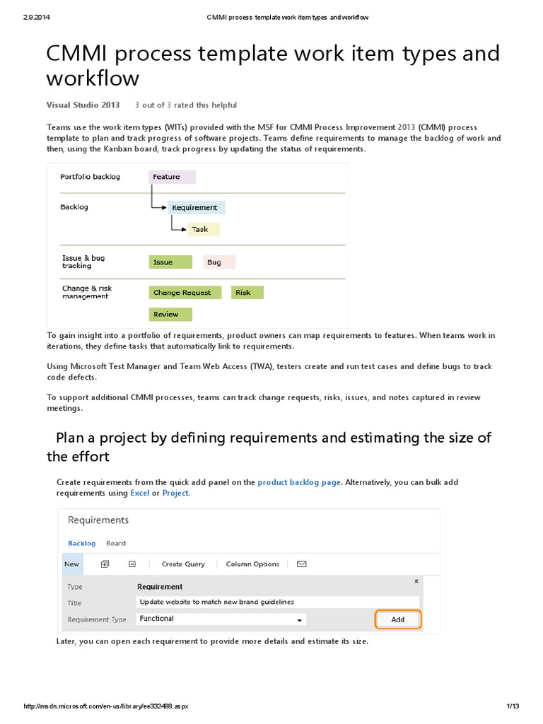 CMMI Process Template Work Item Types and Workflow Scrum (Software