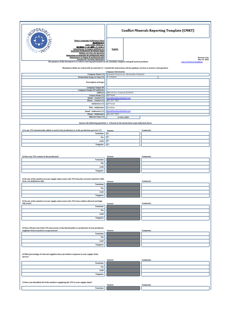 Fillable Online Conflict Minerals Reporting Template (CMRT) Completion