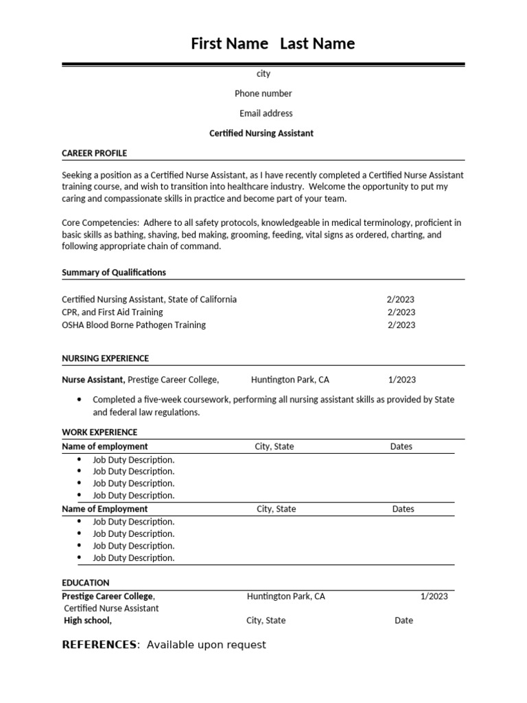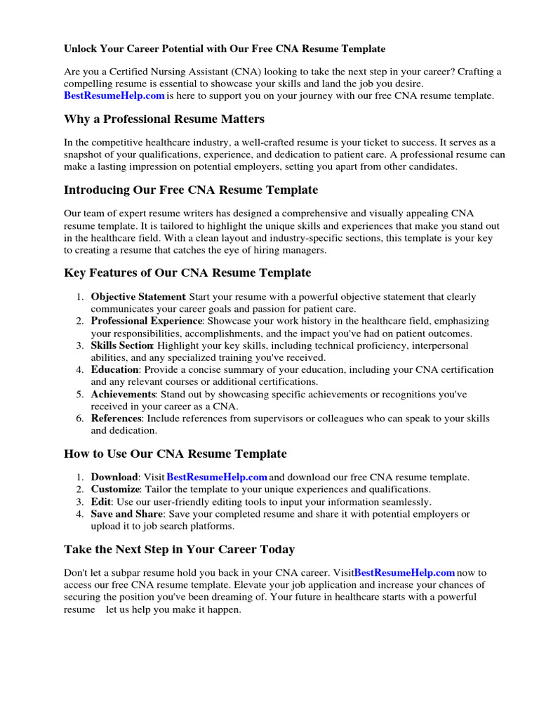 Here are some of the images for Cna Resume Template Free that we found in our website database.