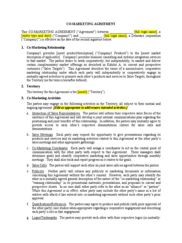 Co Marketing Agreement Template