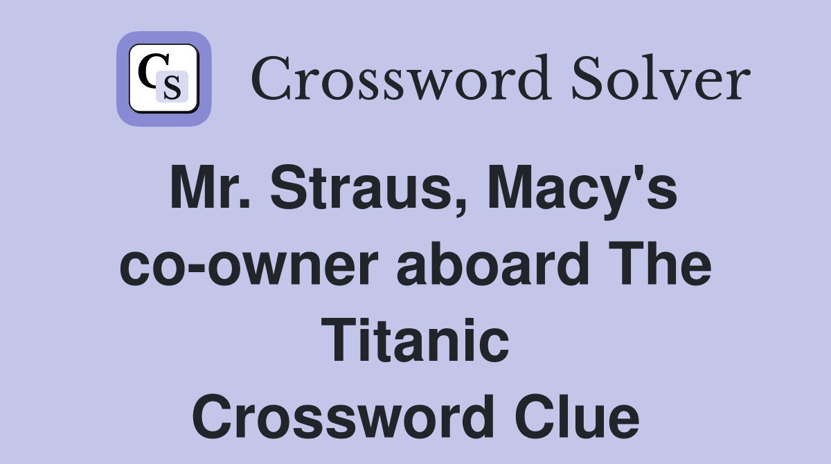 Mr Straus Macy s co owner aboard The Titanic Crossword Clue Answers