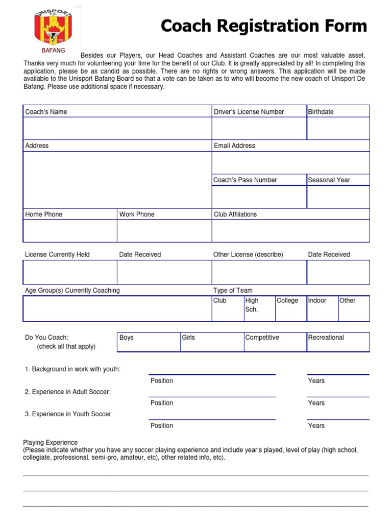 Coach Registration Form PDF