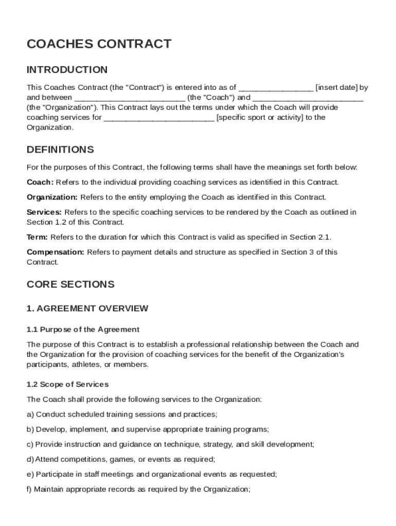 Sports Coach Contract Example Templates Docs Word Examples in Coaches