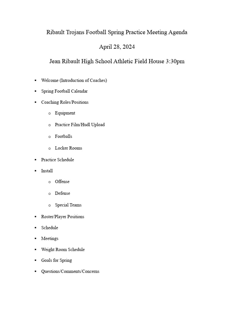 Coach Parent Meeting Agenda Meeting agenda template Meeting agenda