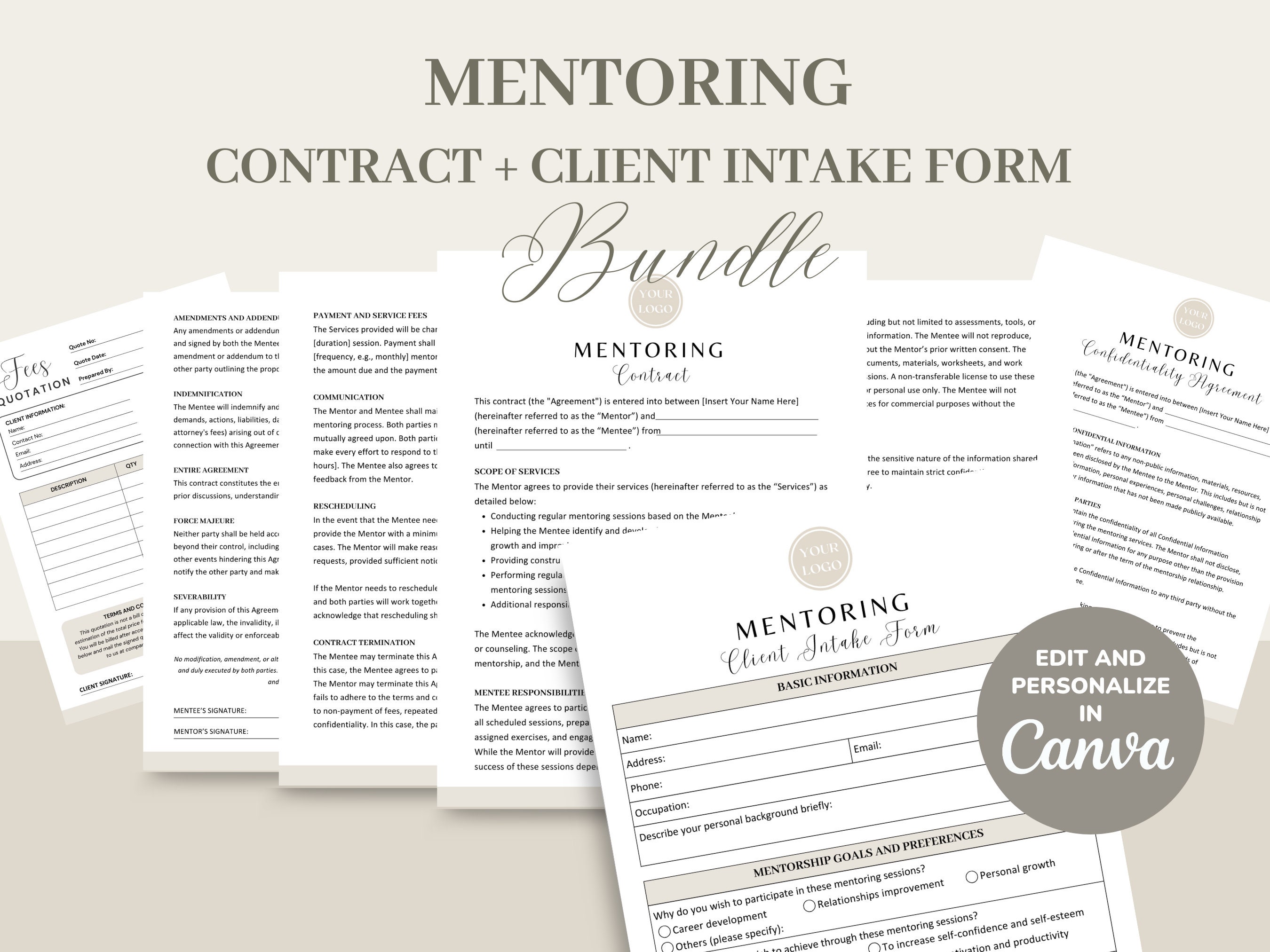 Mentoring Contract Agreement Template Editable Printable Life Coach