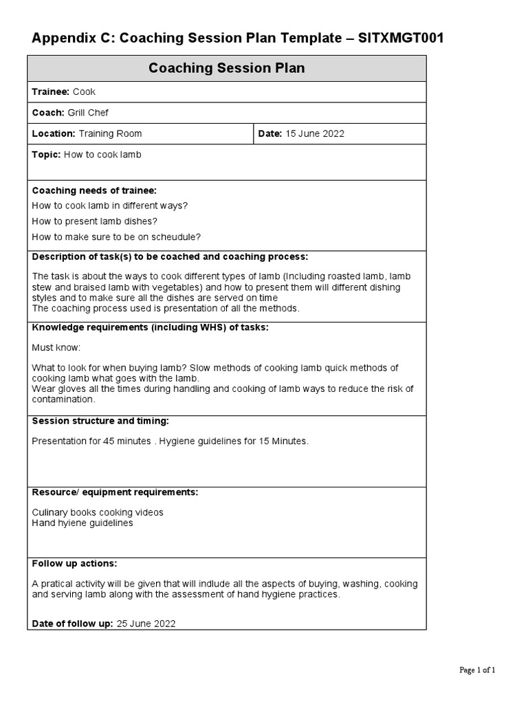 Coaching Session Plan: Effective Techniques and Procedures for Course
