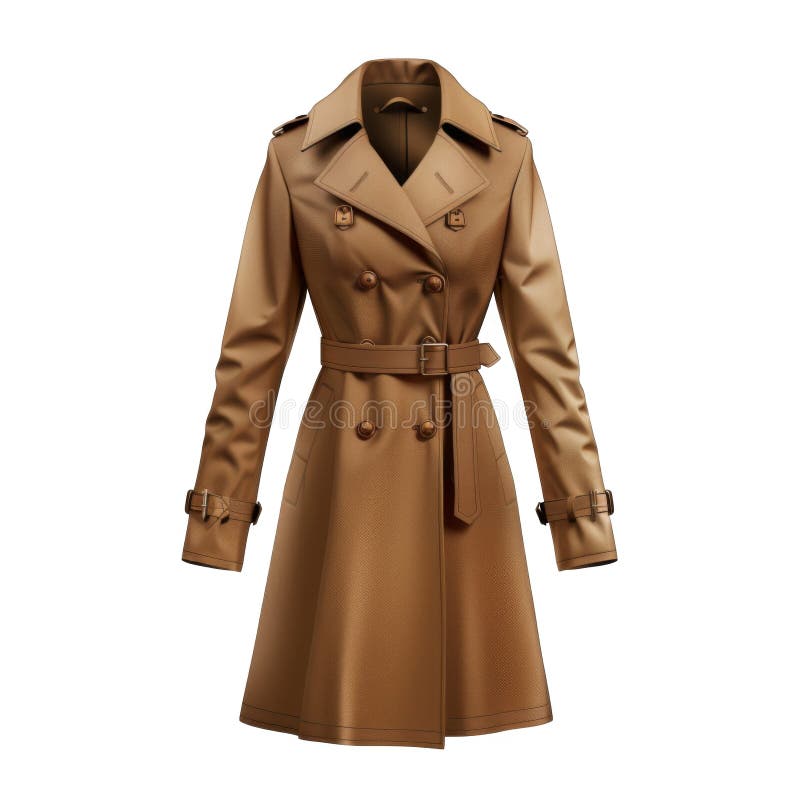 A Tan Leather Trench Coat with a Belt and Gold Buttons Stock Image