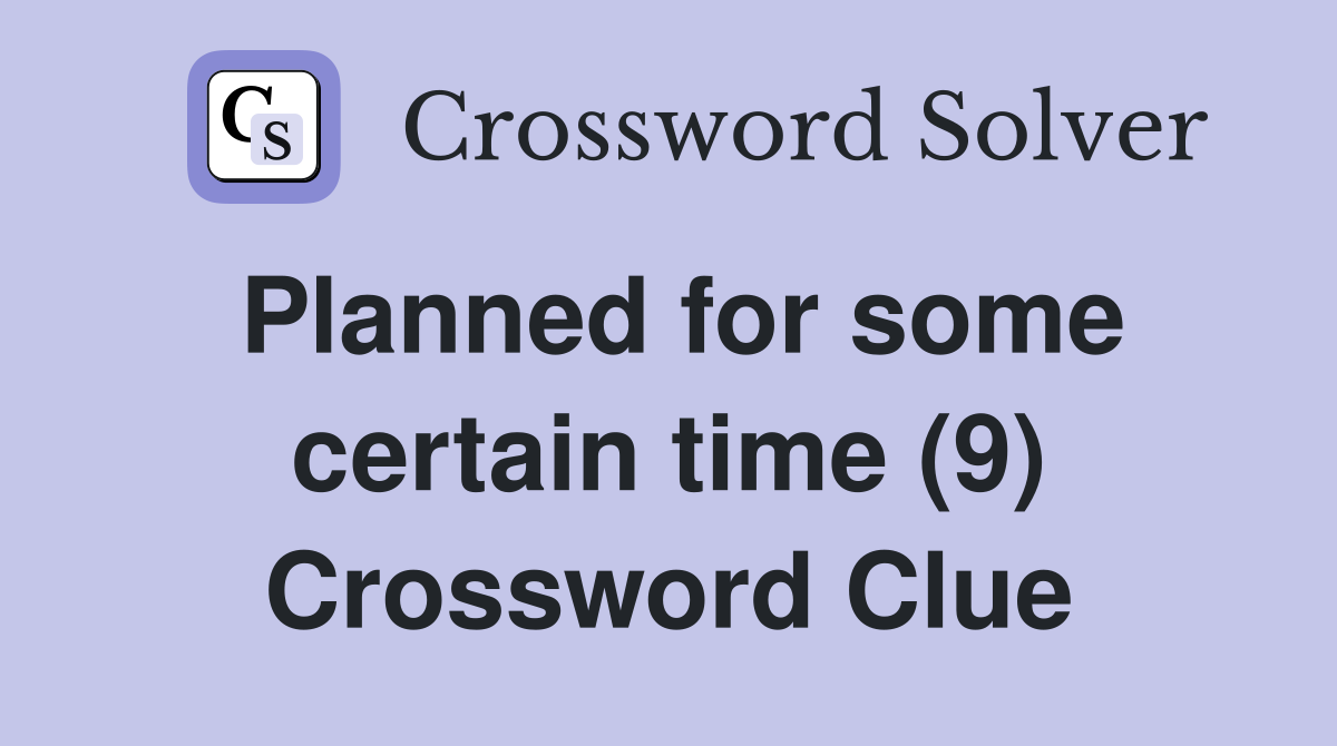 Planned for some certain time (9) Crossword Clue Answers Crossword