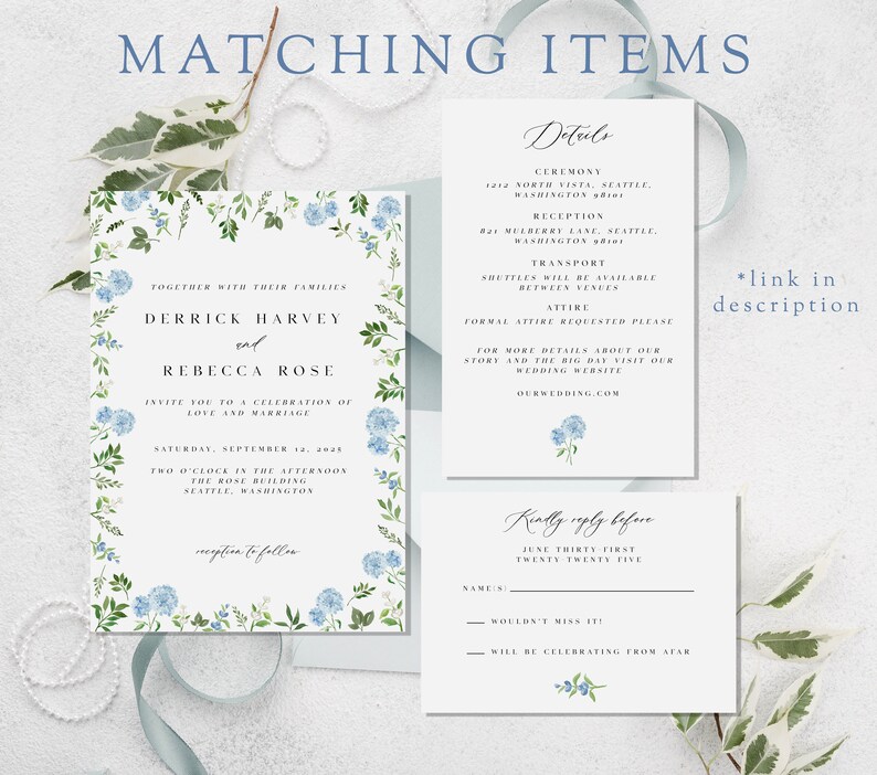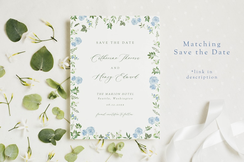 Floral Cocktail Napkin TEMPLATE Blue Hydrangea Wedding Napkin
