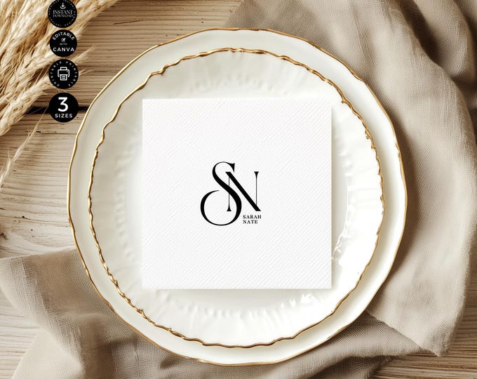 Elegant Wedding Cocktail Napkin Template Personalized Printable