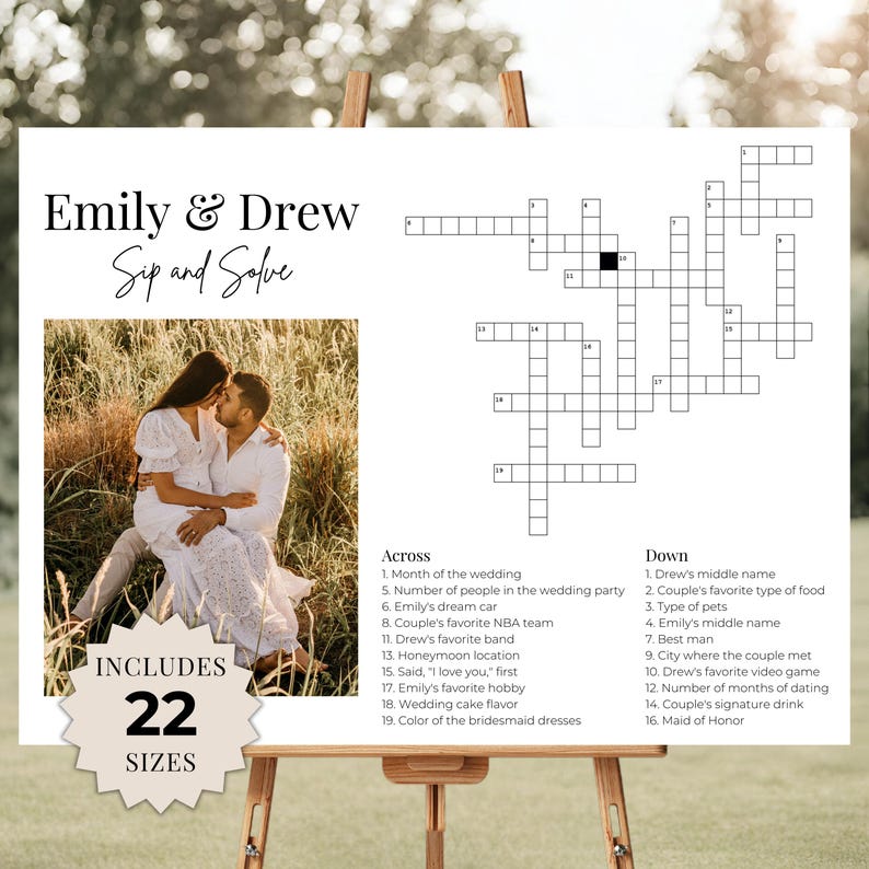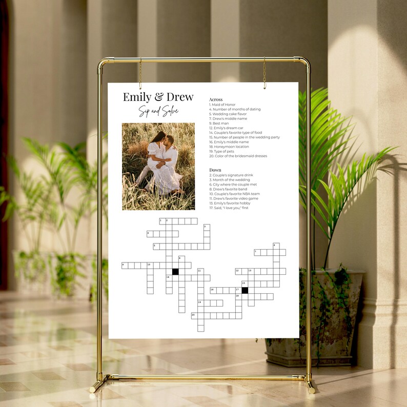 Custom Wedding Crossword Puzzle Sip and Solve Reception Decor
