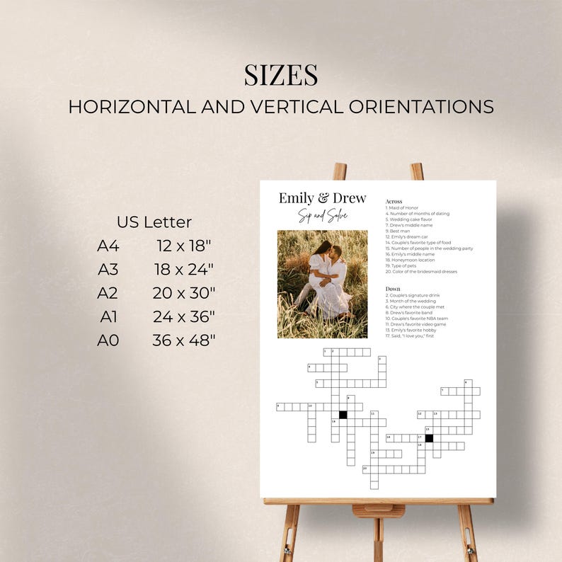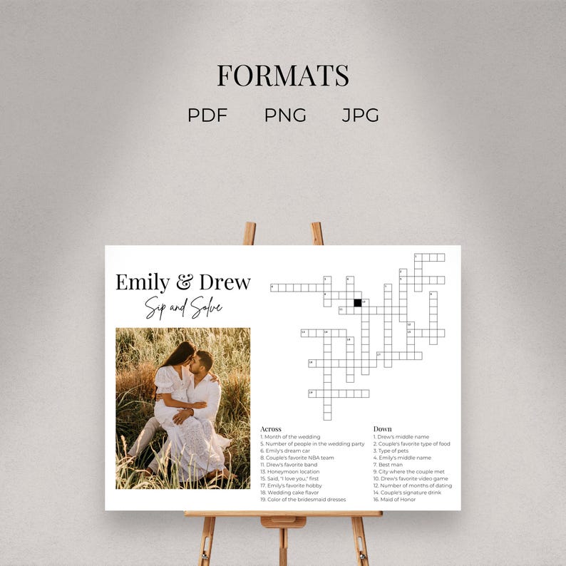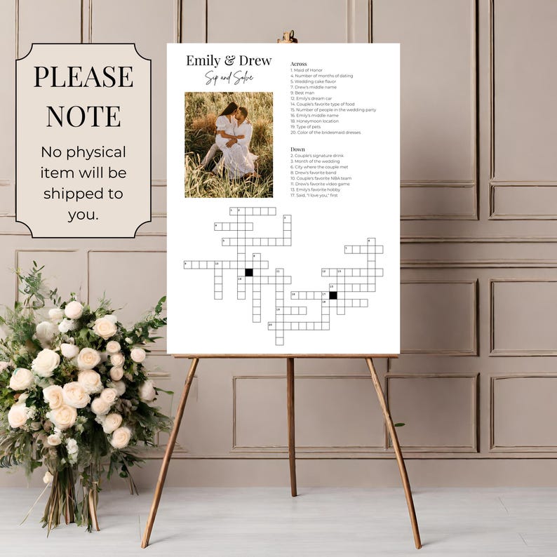 Custom Wedding Crossword Modern Sip Solve Crossword Large Sip and