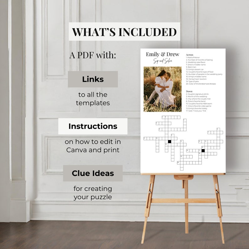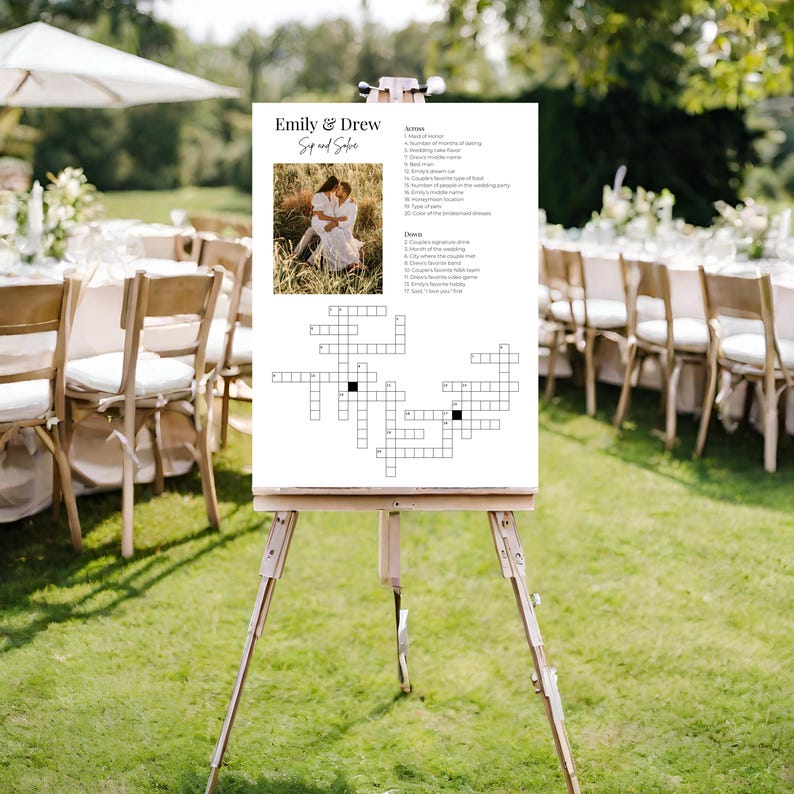 Wedding Crossword Puzzle Sign Minimal Personalized Wedding Crossword