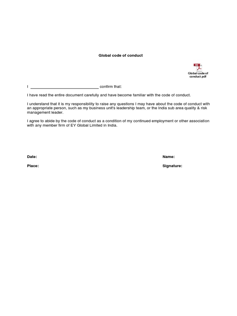 Code of Conduct Form Template PDF PDF