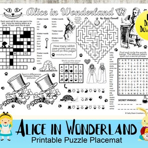 Alice in Wonderland Puzzle Place Mat Crossword Puzzles Activity