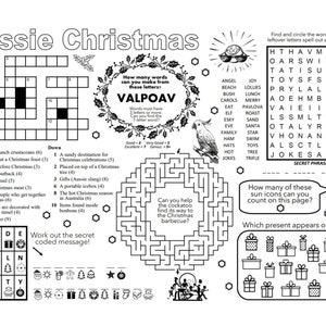 AUSSIE CHRISTMAS Puzzle Placemat PDF Crossword Puzzles Activity