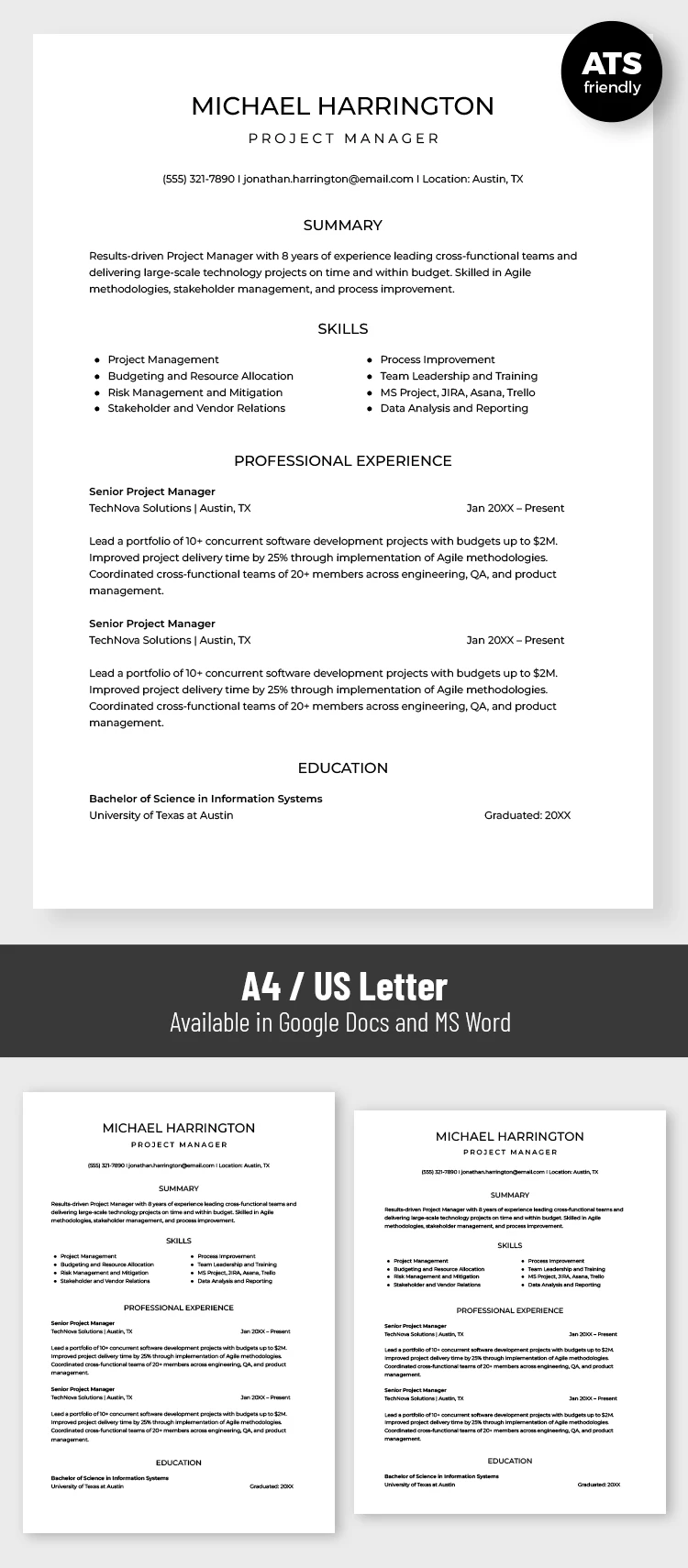 Free Plantilla de currículum ATS concisa con resumen Plantilla en