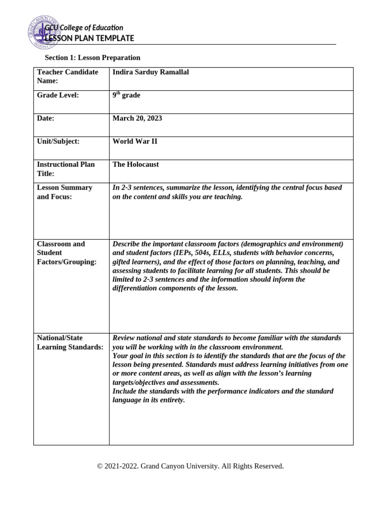 Coe lesson plan template GCU College of Education LESSON PLAN
