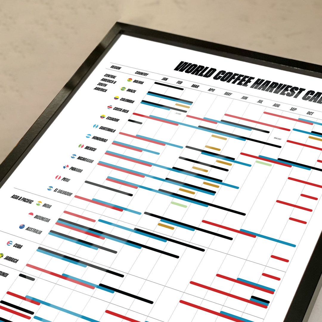World Coffee Harvest Calendar Poster (perfect for Cafes and Coffee