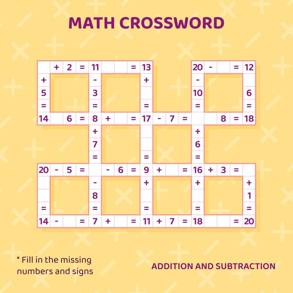 Math Crossword puzzle for kids Addition and subtraction Counting up