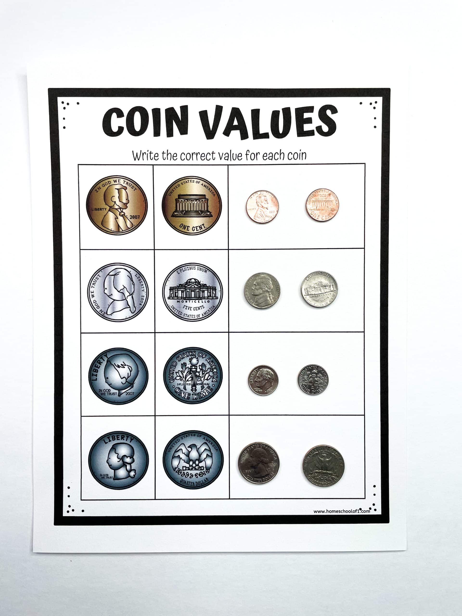4 FREE Printable Coin Worksheets First Grade Curriculum Homeschool