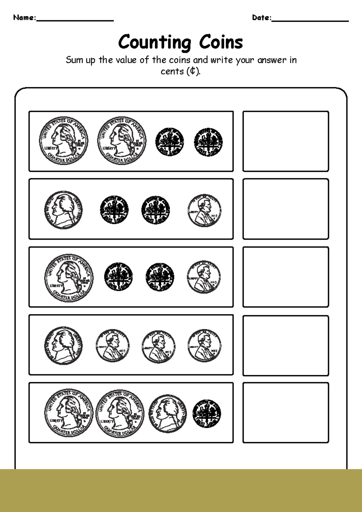 Counting Coins 2nd Grade Worksheet Name: Date: Counting Coins Sum