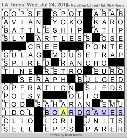 L A Times Crossword Corner: Wednesday July 24th 2013 MaryEllen Uthlaut