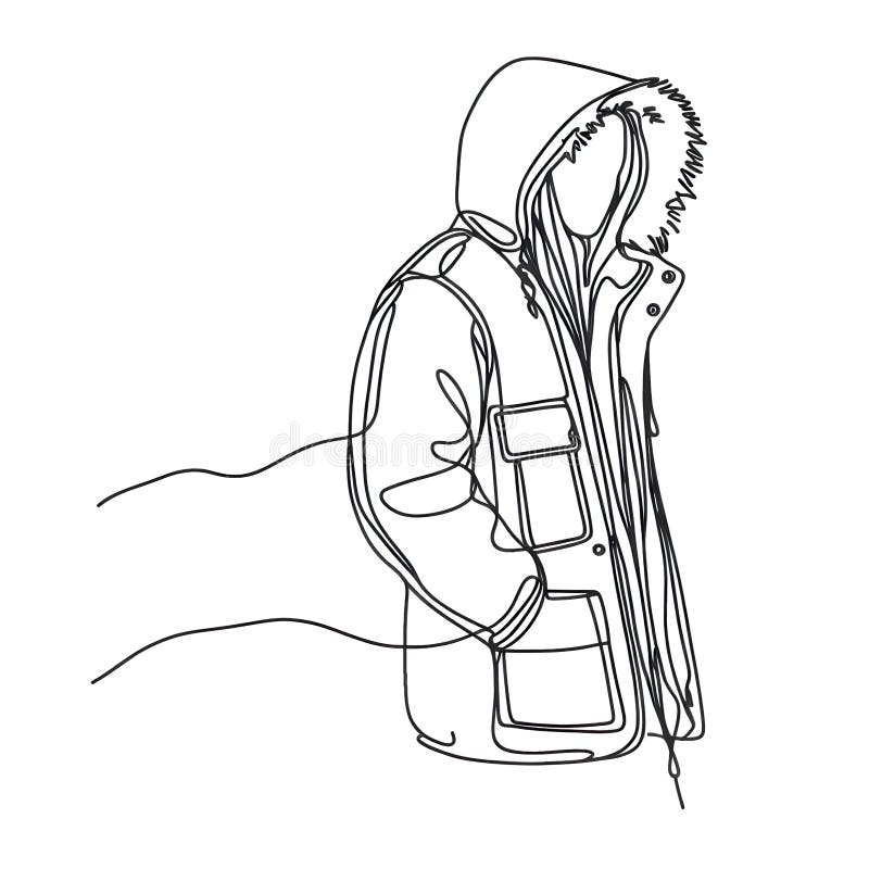 A Drawing Depicting a Cold weather Coat Featuring a Hood Adorned with